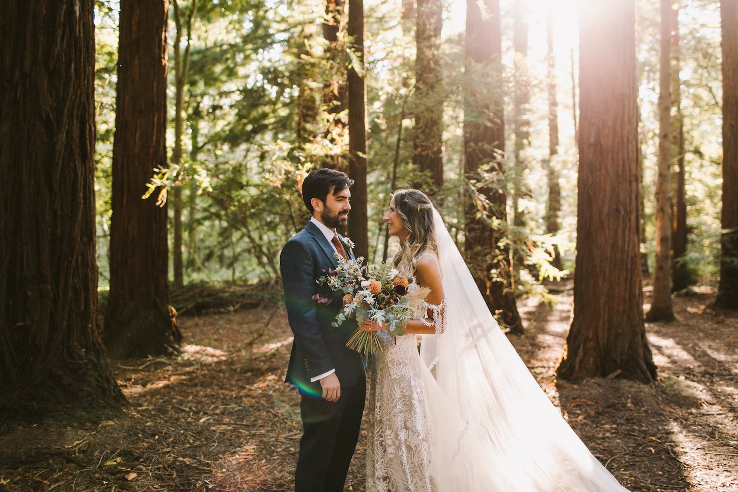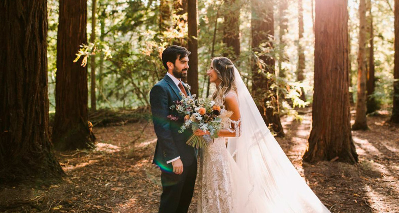 Exchange vows under the canopy in a private woodland. Dappled light, natural aisle, and birdsong create a quietly cinematic setting.