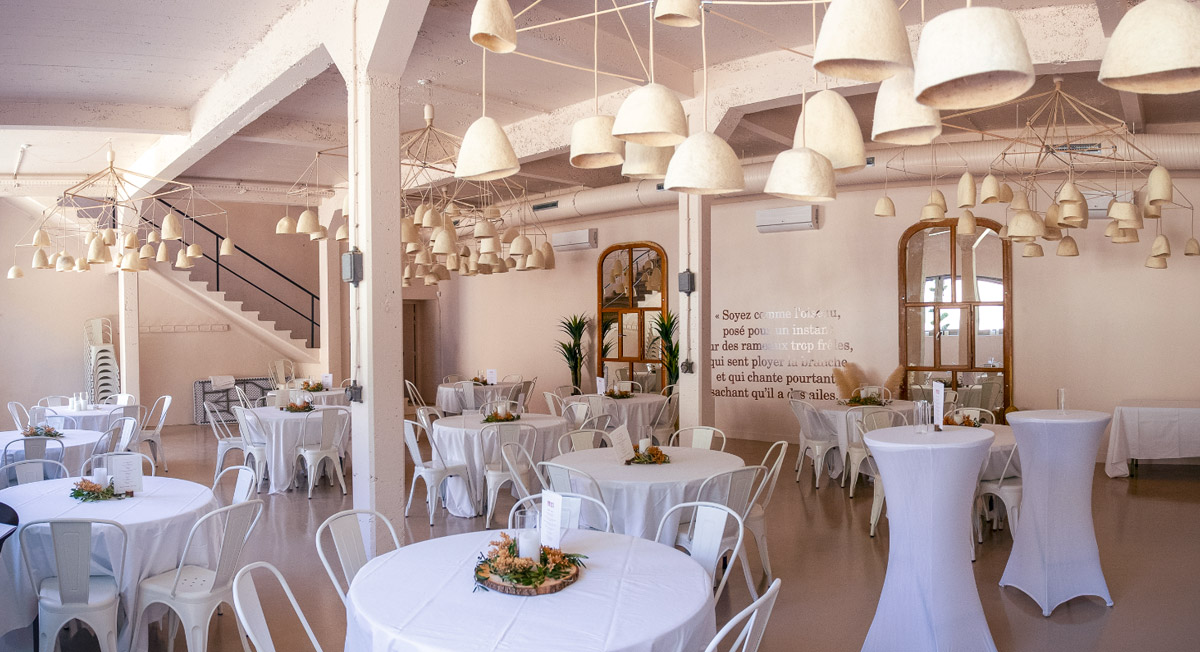 La Plumasserie est notre principal espace événementiel situé au rez-de-chaussée du bâtiment. Cet espace unique et élégant offre un espace idéal pour des dîners et soirées, pouvant accueillir jusqu’à 140 personnes assises et 200 personnes pour un cocktail.